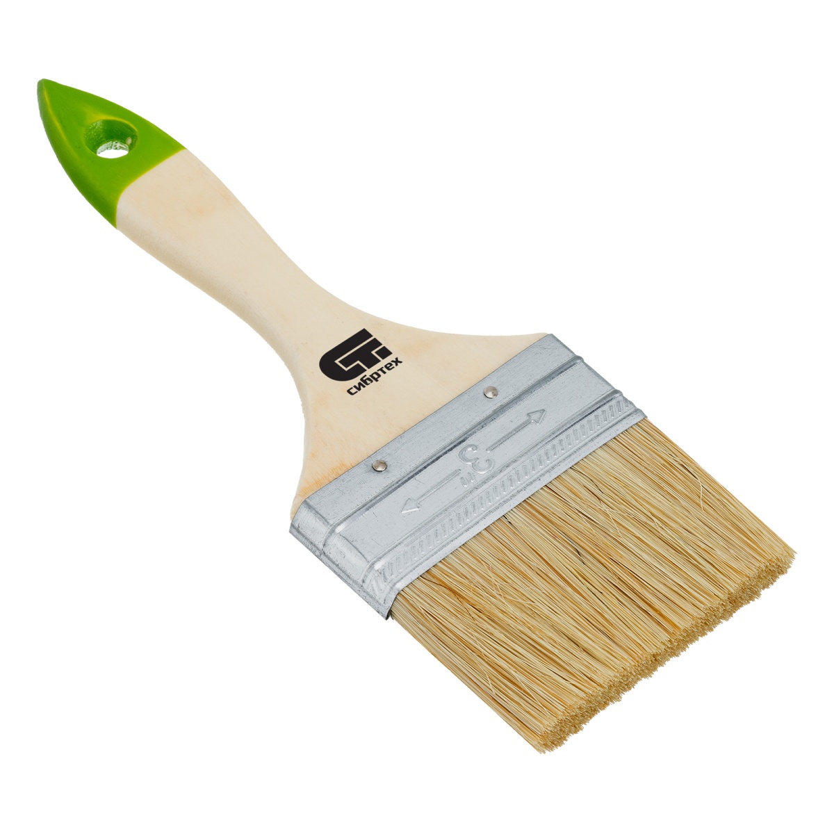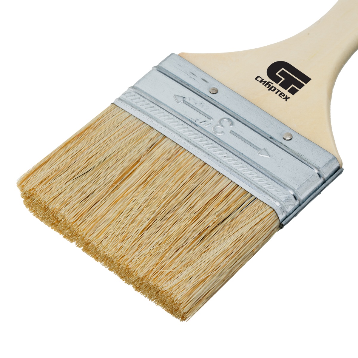 Купить Кисть плоская 75 мм, натуральная щетина, деревянная ручка Сибртех V2110 по лучшей цене с доставкой - интернет магазин №1 в России