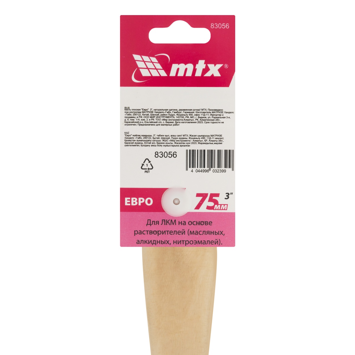 Купить Кисть плоская "Евро" 3", натуральная щетина, деревянная ручка MTX V2076 по лучшей цене с доставкой - интернет магазин №1 в России