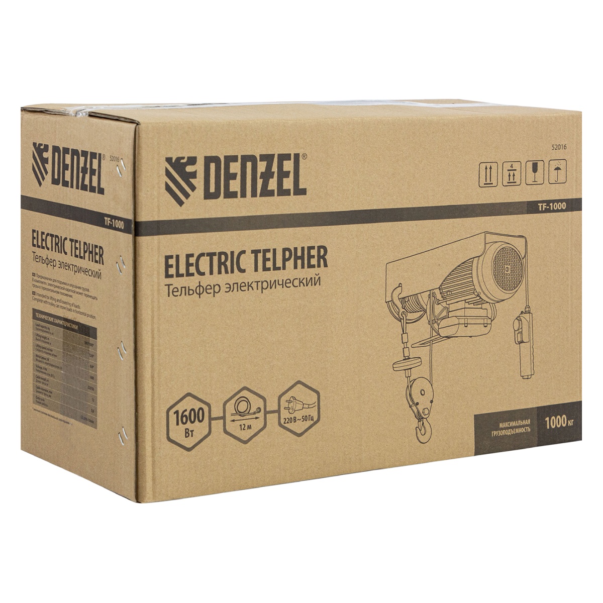 Купить Тельфер электрический TF-1000,1 т, 1600 Вт, высота 12 м, 8 м/мин Denzel V7071 по лучшей цене с доставкой - интернет магазин №1 в России