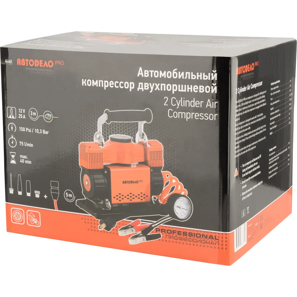 Купить Автокомпрессор Автоdело 12V двухпоршневой (10,5 АТМ 75L/MIN) PRO 44440 16905 по лучшей цене с доставкой - интернет магазин №1 в России