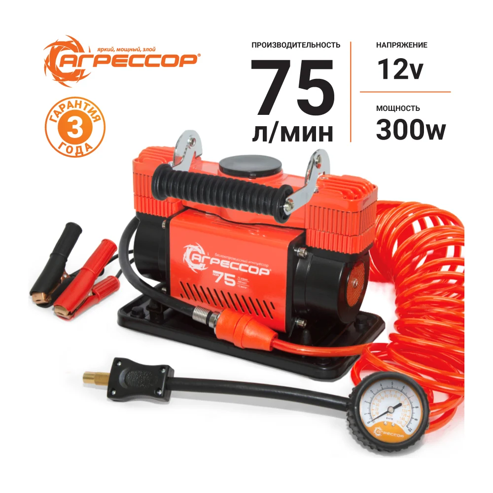 Купить Автомобильный компрессор Агрессор металлический, дву поршневой, 12 V, 300 W, производительность 75 л/мин., пере одники для накачки лодок, сумка, 1 4 AGR-75 по лучшей цене с доставкой - интернет магазин №1 в России