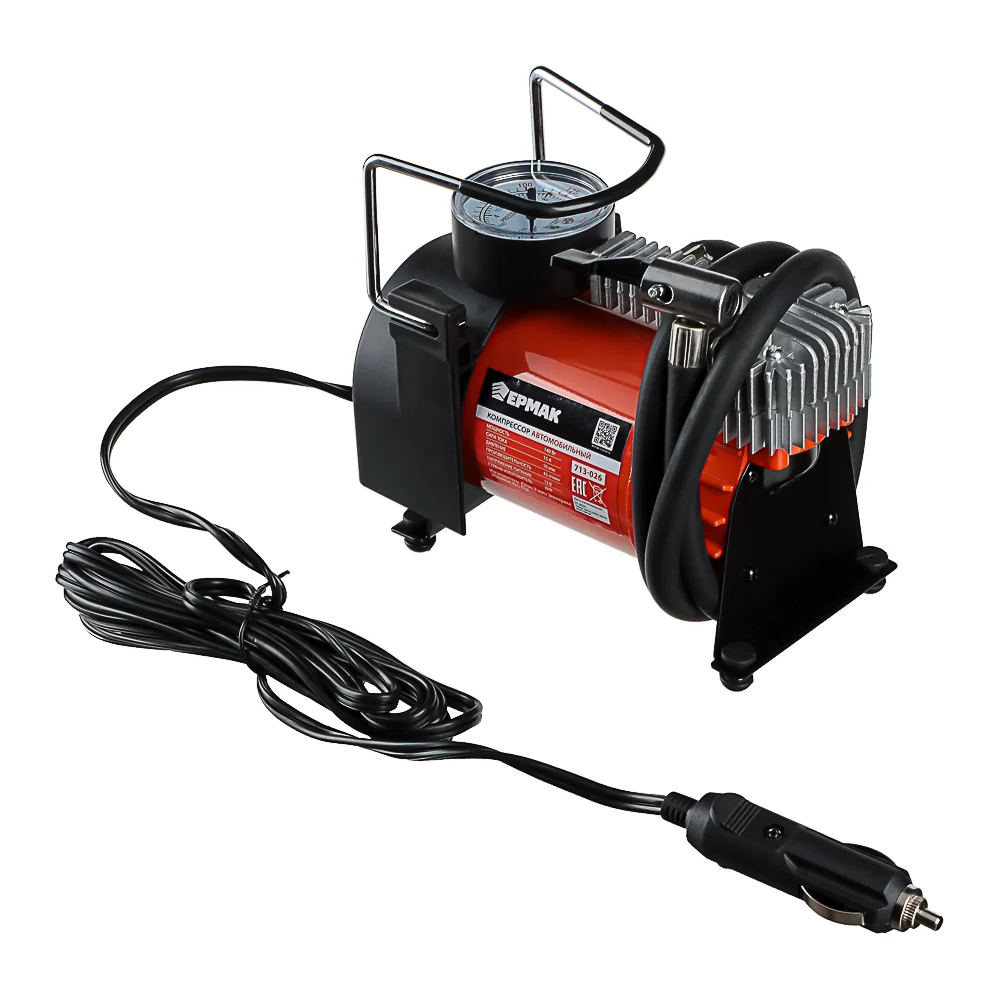 Купить Автомобильный компрессор ЕРМАК штекер прикур., в сумке, 12V, 140W, 35 л/мин, металл 713-026 по лучшей цене с доставкой - интернет магазин №1 в России