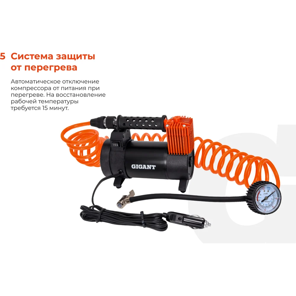 Купить Автомобильный компрессор Gigant металл, 12V, LED фонарь GCA-50 по лучшей цене с доставкой - интернет магазин №1 в России