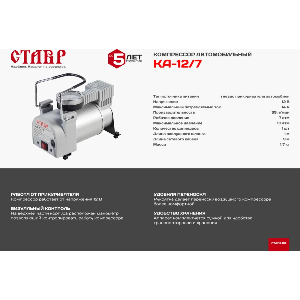 Купить Автомобильный компрессор Ставр КА-12/7 9010300086 по лучшей цене с доставкой - интернет магазин №1 в России