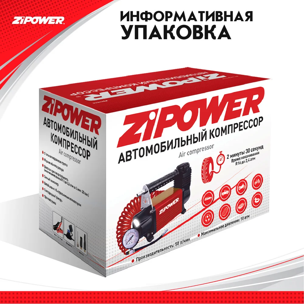 Купить Автомобильный компрессор ZIPOWER 50 л/мин. 10 атм. PM6528 по лучшей цене с доставкой - интернет магазин №1 в России
