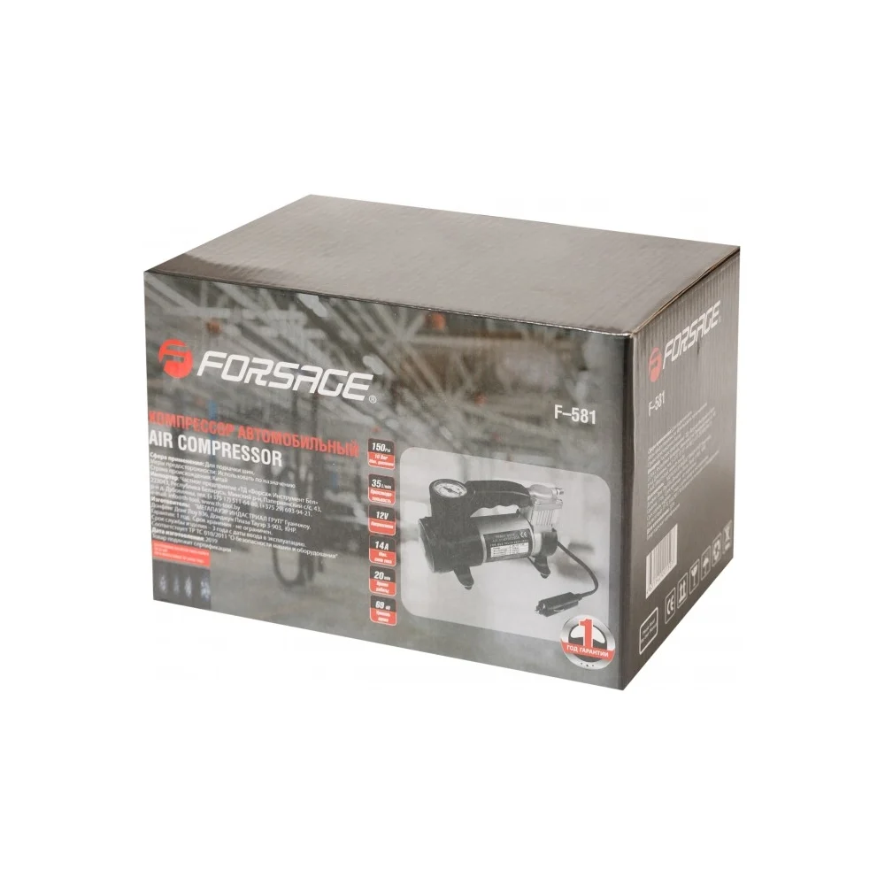 Купить Автомобильный поршневой компрессор Forsage с фонарем, 35 л/мин, 15 А F-581(30182) по лучшей цене с доставкой - интернет магазин №1 в России