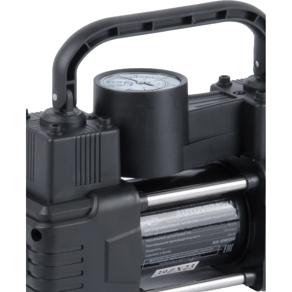 Двухцилиндровый компрессор AUTOVIRAZH 55 л/мин мини, с манометром, доп. спиральный шланг AV-010550