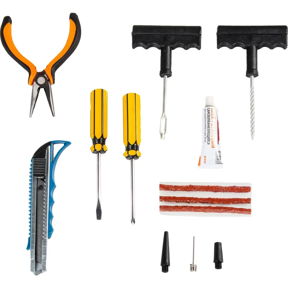 Комплектация Компрессор TORNADO S (30 л/мин., 7 АТМ) (CA-030-19S) - 1шт; Ремкомплект для б/к шин (шило, рашпиль, жгуты) - 1шт; Клей резиновый в тюбике 12г. для ремонта шин и камер (AG-R-01) - 1 шт; Нож - 1 шт; Длинногубцы - 1 шт; Переходники-насадки - 3 шт; Инструкция по применению - 1 шт; Гарантийный талон - 1 шт; Кейс пластиковый -1 шт; Упаковка