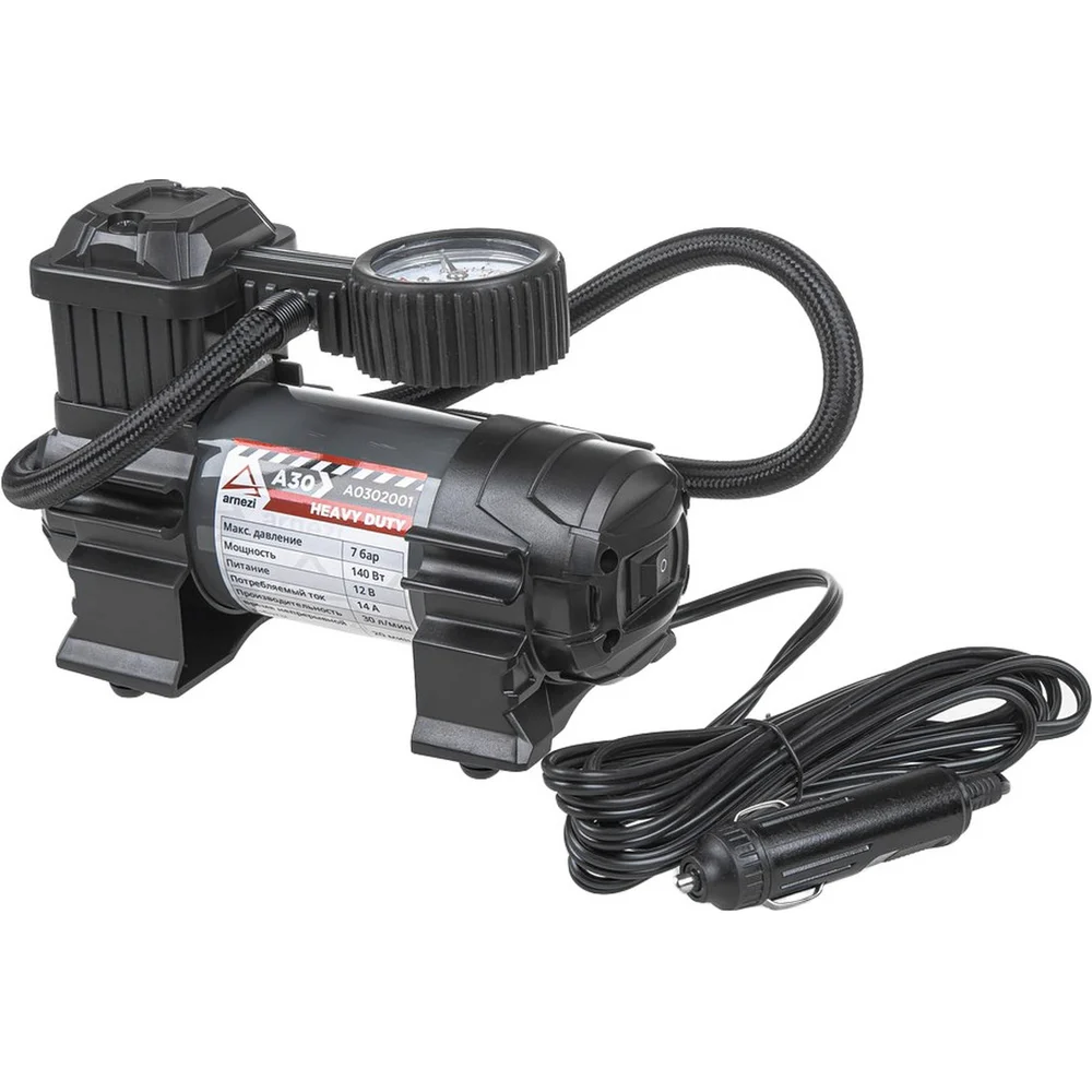 Купить Компрессор автомобильный Arnezi A30 Heavy Duty 7 бар, 30 л/мин, 140 Вт A0302001 по лучшей цене с доставкой - интернет магазин №1 в России