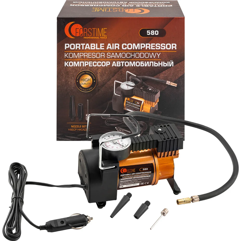 Купить Компрессор автомобильный FORSTIME 12V, производительность 30л/мин FT-580(63193) по лучшей цене с доставкой - интернет магазин №1 в России