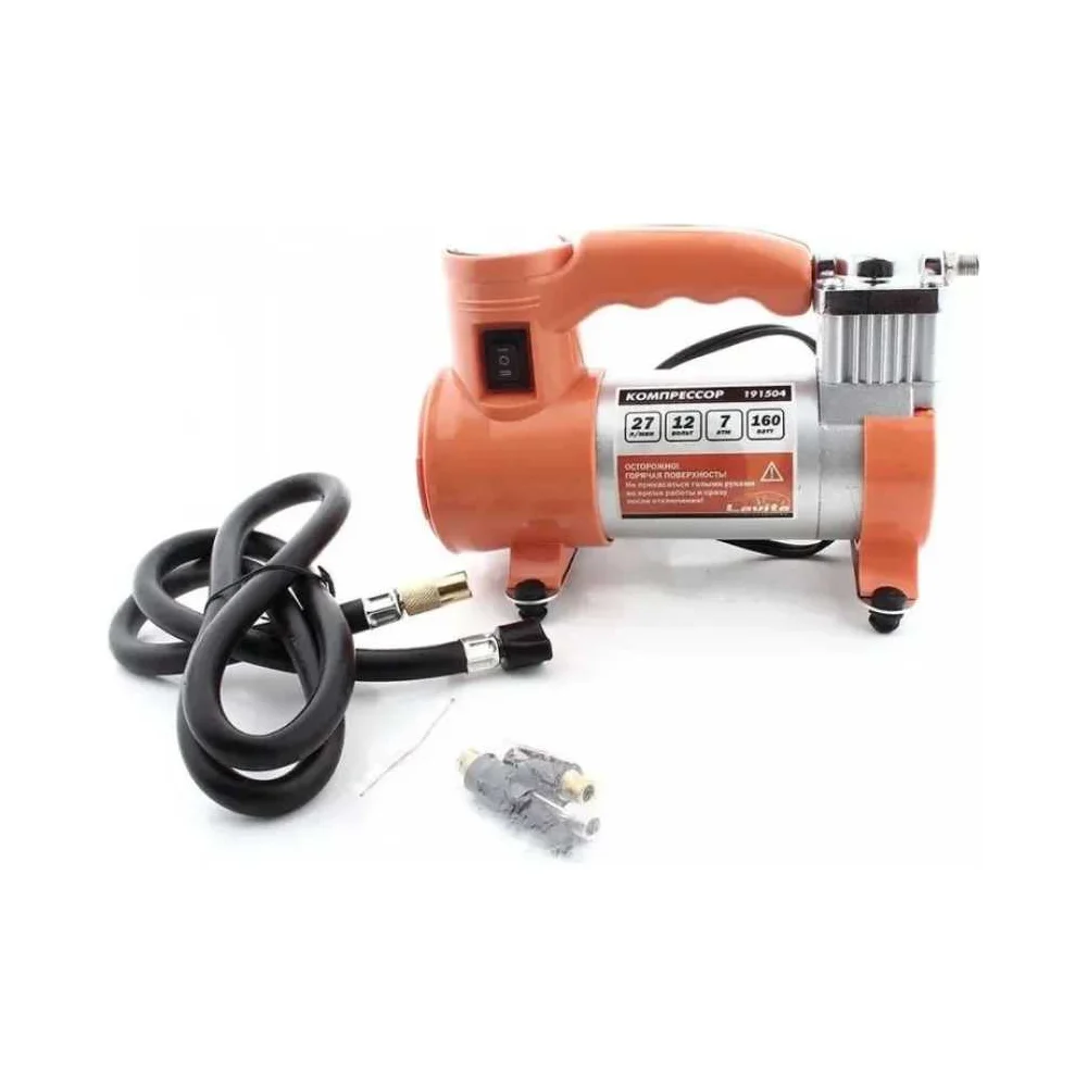 Купить Компрессор автомобильный LAVITA 12В, 15А, 7 АТМ., 27Л/МИН. (+ФОНАРЬ;+СУМКА) LA 191504 по лучшей цене с доставкой - интернет магазин №1 в России