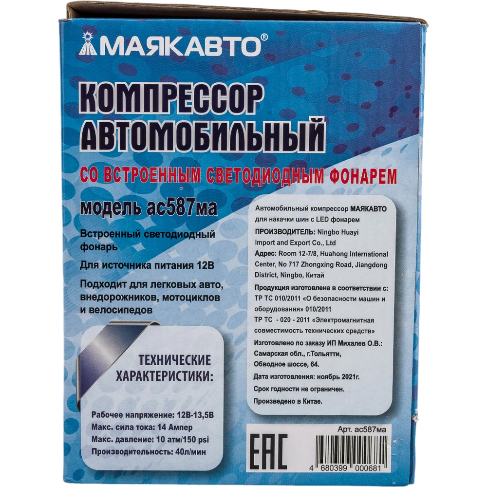 Купить Компрессор МАЯКАВТО AC587ma 35 л/м, с LED фонарем AC587ma по лучшей цене с доставкой - интернет магазин №1 в России