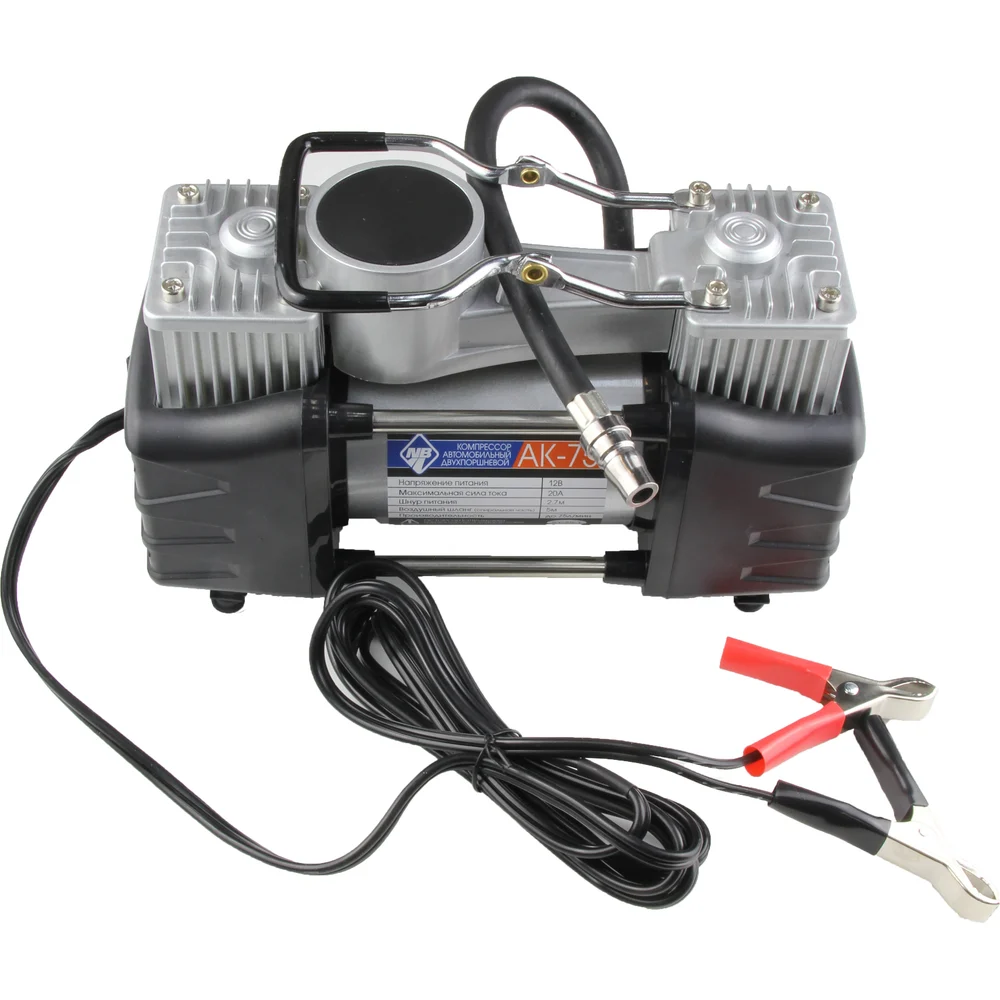 Компрессор Nova Bright АК-75 двухпоршневой, до 75 л/мин., 150 PSI, 12В, пластиковый кейс с инструментами 36448