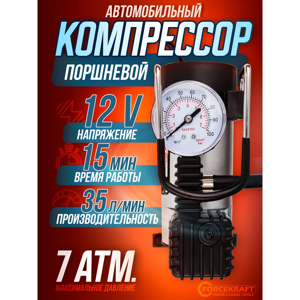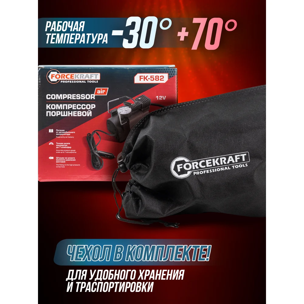 Купить Компрессор поршневой автомобильный Forcekraft 14A 12V FK-582(30185) по лучшей цене с доставкой - интернет магазин №1 в России
