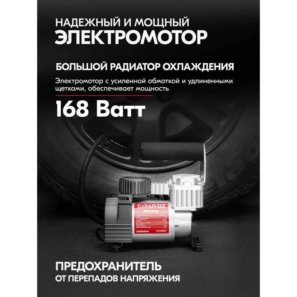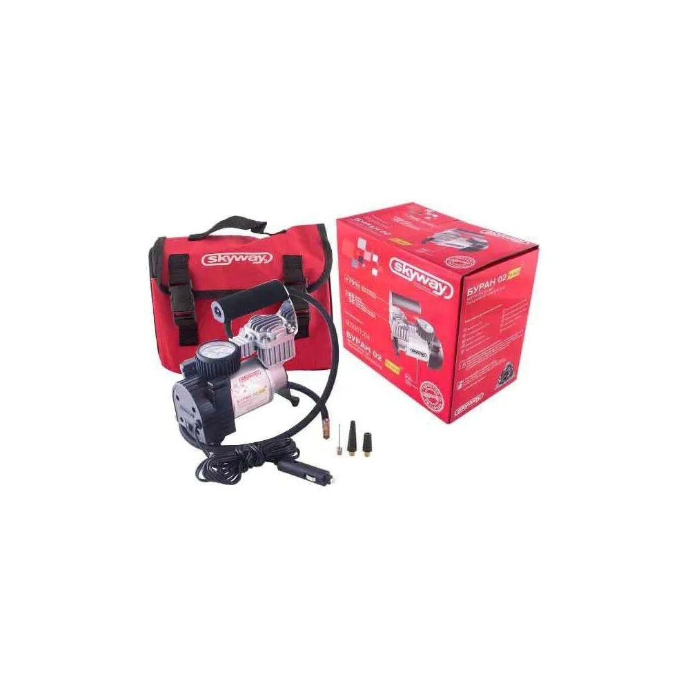 Купить Металлический компрессор 45л/мин в прикуриватель Hi-tech Сумка, 7атм SKYWAY БУРАН-02 S02001004 по лучшей цене с доставкой - интернет магазин №1 в России
