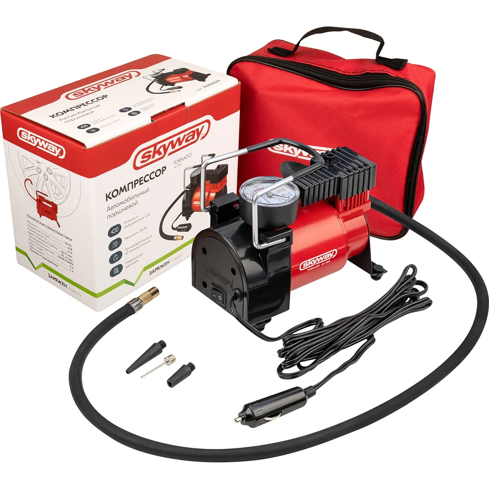 Купить Металлический компрессор SKYWAY 40 л/мин в прикуриватель ТОРНАДО АС-580 S02001019 по лучшей цене с доставкой - интернет магазин №1 в России