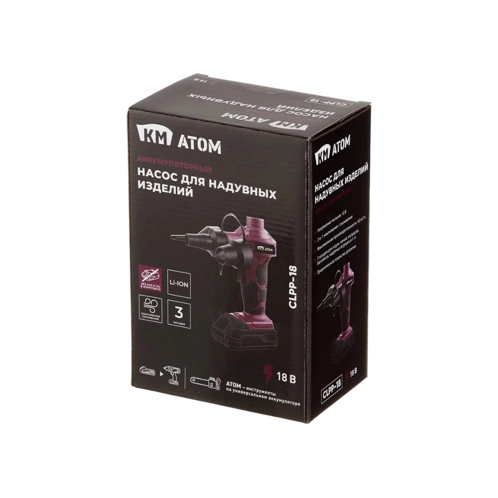 Купить Насос аккумуляторный для надувных изделий КМ АТОМ без АКБ и ЗУ 18 В CLPP-181 по лучшей цене с доставкой - интернет магазин №1 в России