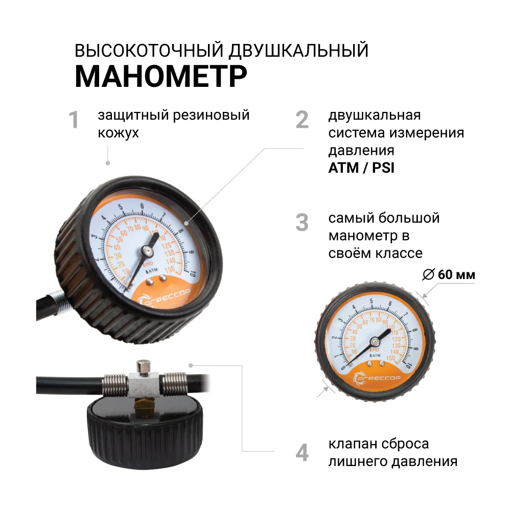 Купить Воздушный компрессор Агрессор 300 л/мин, 12 В/90 А, шланг 8 м, шнур питания 2.4 м, питание от акб AGR-300K по лучшей цене с доставкой - интернет магазин №1 в России