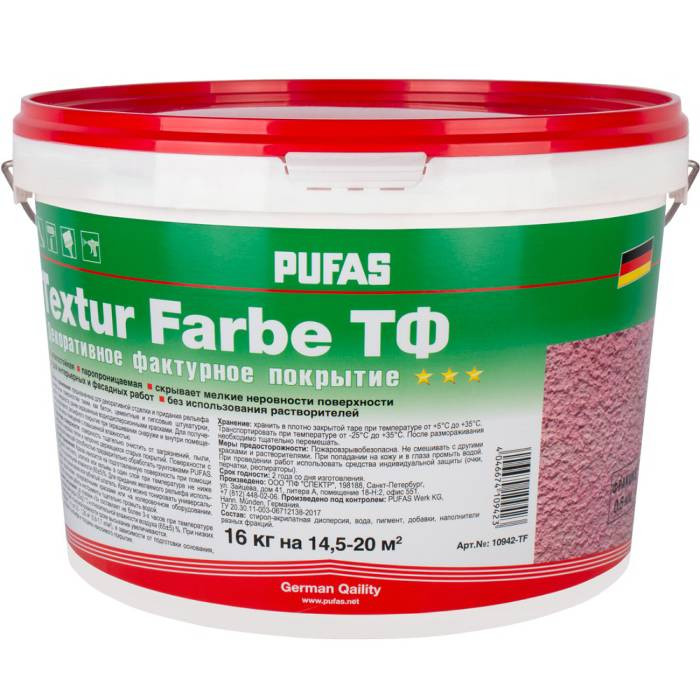 Покрытие декоративное фактурное Pufas Textur Farbe ТФ морозостойкое белое 0,5 мм 16 кг