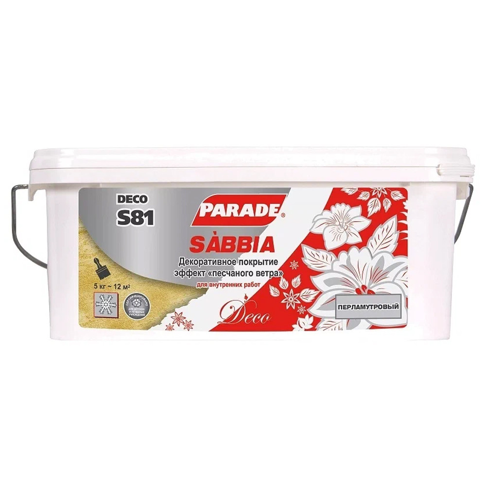 Купить Покрытие декоративное Parade Deco Sabbia S81 с эффектом песчаного ветра перламутровый 5 кг по лучшей цене с доставкой - интернет магазин №1 в России