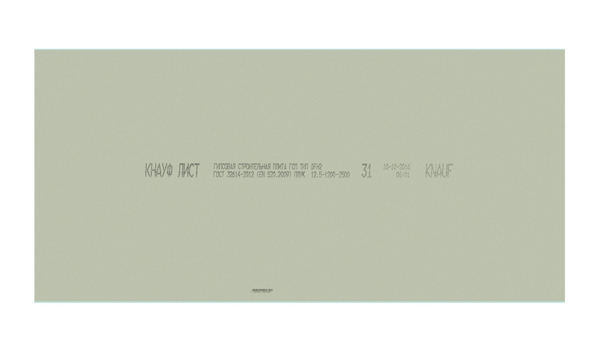Купить Гипсокартон ГКЛВО Knauf ГСП-DFН2 ПЛУК влагоогнестойкий 2500х1200х12,5 мм по лучшей цене с доставкой - интернет магазин №1 в России