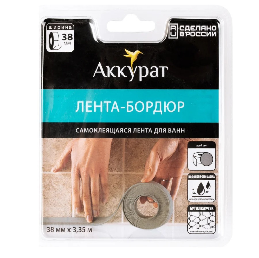 Купить Лента-бордюр самоклеящаяся Аккурат hk95941 38 мм 3,35 м серая по лучшей цене с доставкой - интернет магазин №1 в России