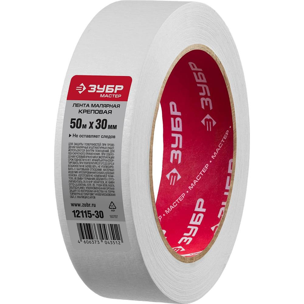 Купить Малярная лента Зубр 12115-30 креповая 30 мм 50 м по лучшей цене с доставкой - интернет магазин №1 в России