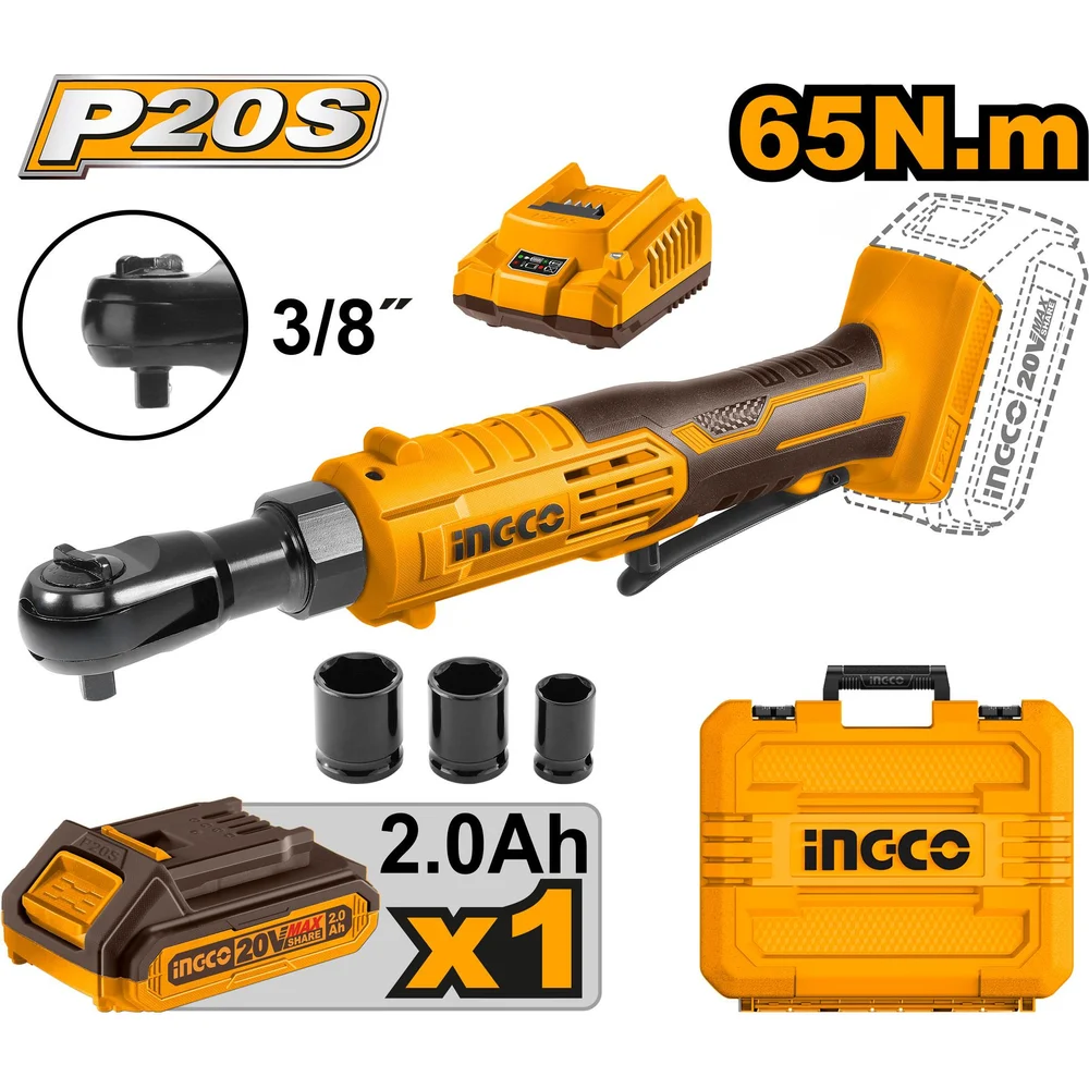Купить Аккумуляторная угловая трещотка INGCO 3/8 20 В 2.0 Ач 1хАКБ 2 Ач и ЗУ CDRLI2060152 по лучшей цене с доставкой - интернет магазин №1 в России
