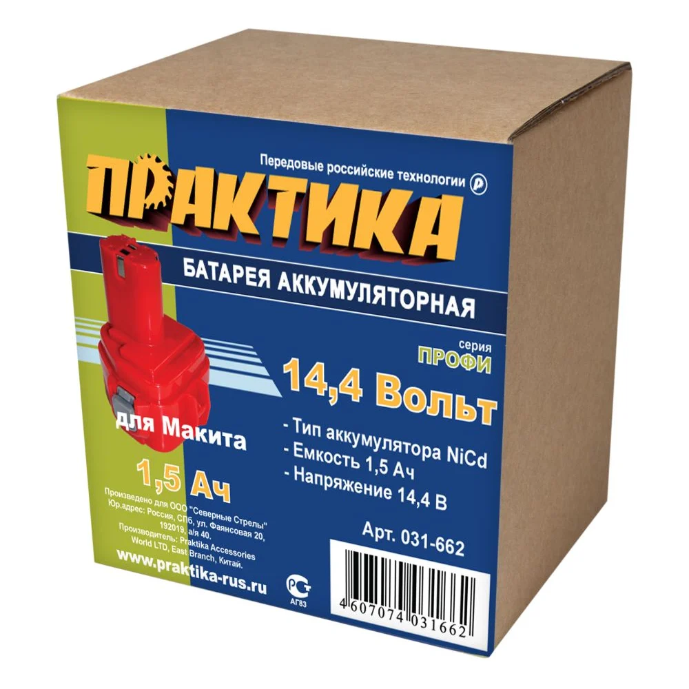 Купить Аккумулятор (14.4 В; 1.5 А*ч; NiCd) для инструментов MAKITA коробка ПРАКТИКА 031-662 по лучшей цене с доставкой - интернет магазин №1 в России