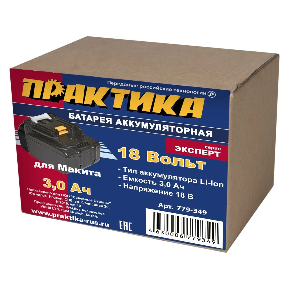 Купить Аккумулятор (18 В; 3.0 А*ч; Li-Ion) ПРАКТИКА 779-349 по лучшей цене с доставкой - интернет магазин №1 в России