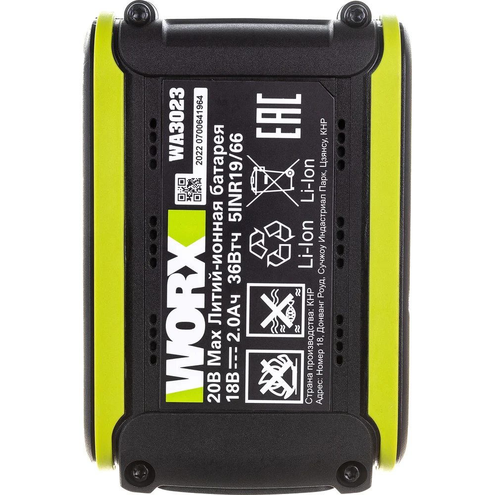 Комплектация Аккумулятор WORX Professional WA3023, 20В 2.0Ач; Коробка