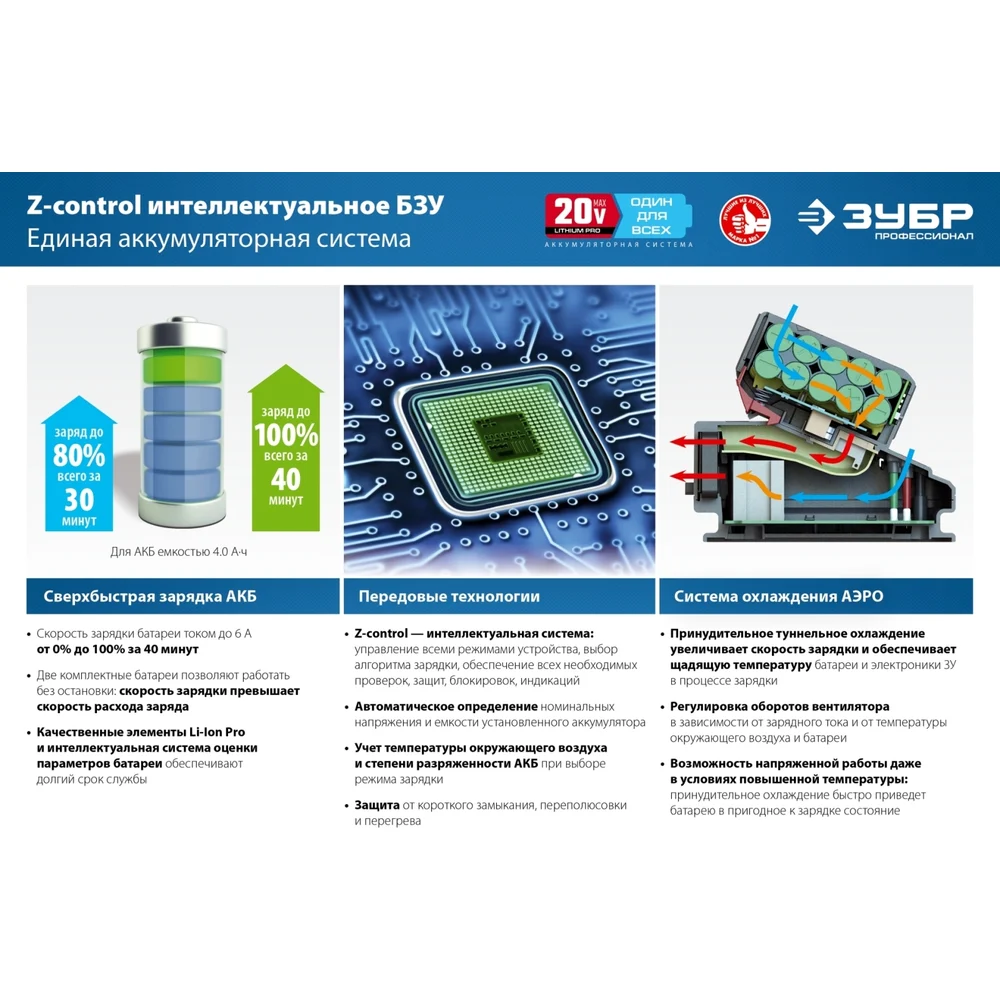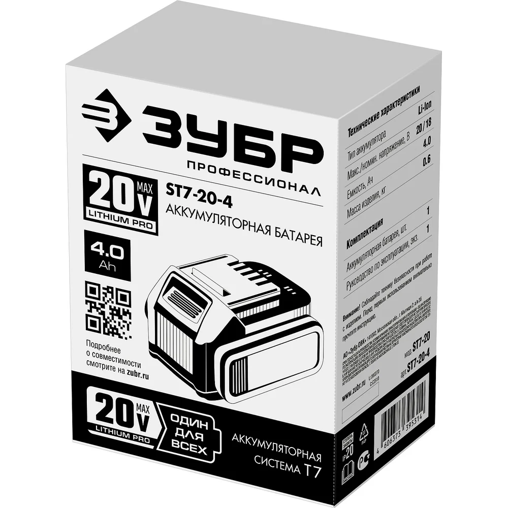 Купить Аккумуляторная батарея ЗУБР Профессионал 20В, Li-Ion, 4Ач, тип T7 ST7-20-4 по лучшей цене с доставкой - интернет магазин №1 в России