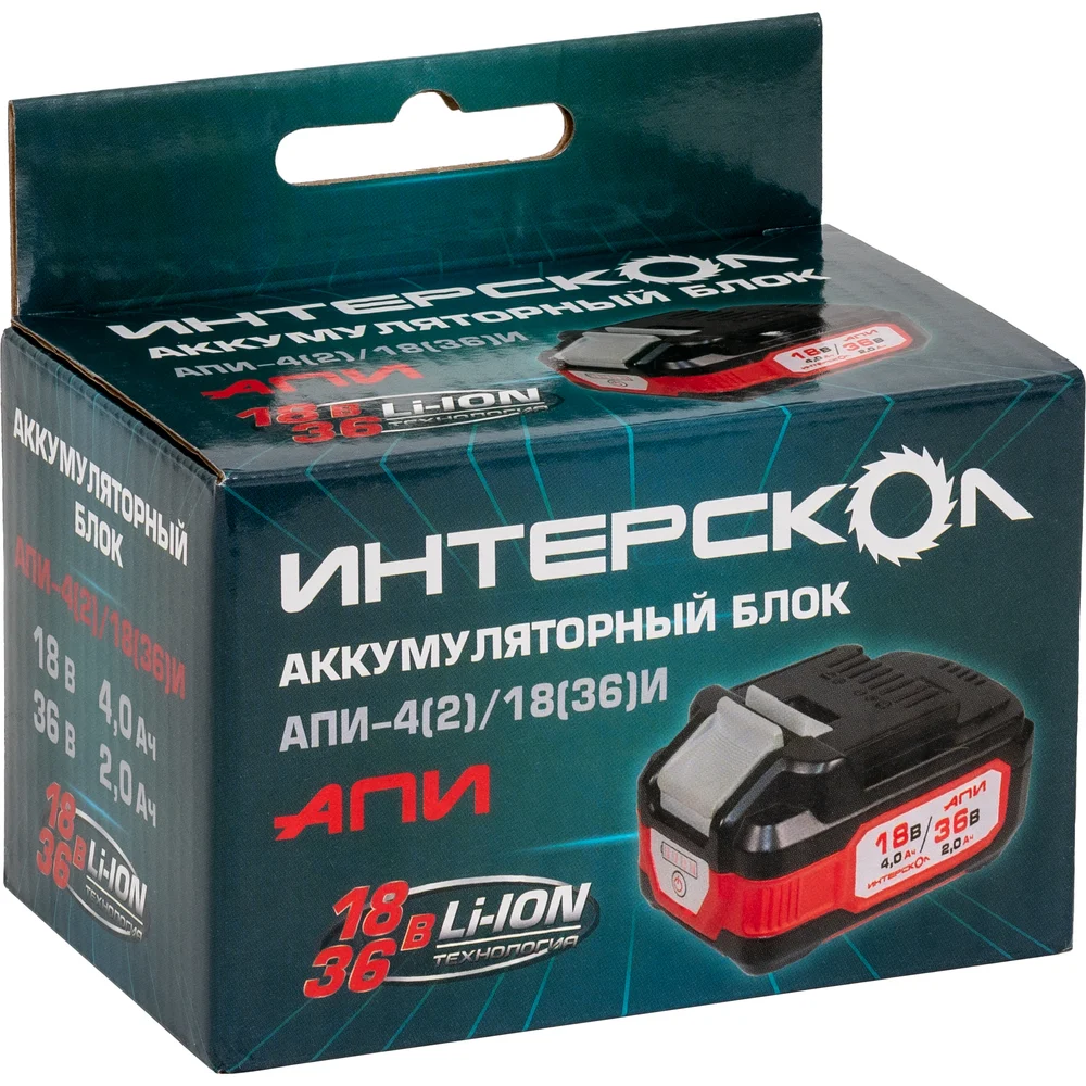 Купить Аккумуляторный блок Интерскол АПИ-4(2)/18(36)И 4,0Ач 18В/2,0Ач 36В, Li-ion с индикатором 2400.204 по лучшей цене с доставкой - интернет магазин №1 в России