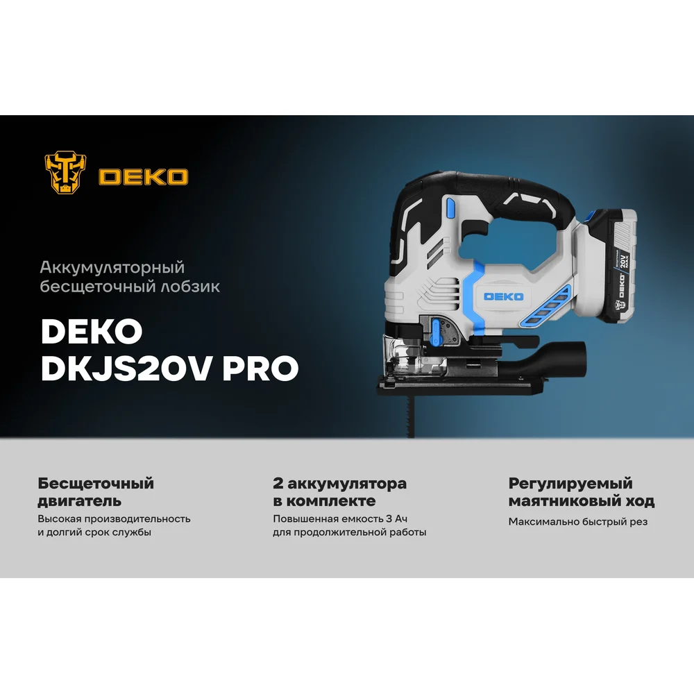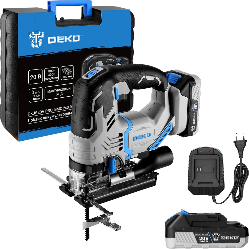 Купить Аккумуляторный лобзик DEKO DKJS20V PRO в кейсе, 20В, 2x3.0Ач 085-1330 по лучшей цене с доставкой - интернет магазин №1 в России
