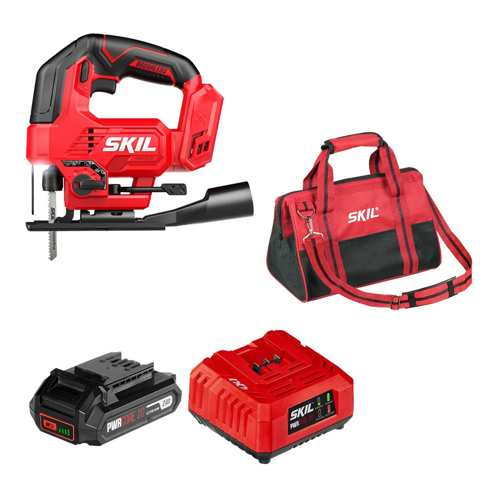 Комплектация Лобзик SKIL JS829; Полотно по дереву; адаптер для пылесоса; руководство по эксплуатации; Аккумуляторная батарея PWRCORE 20™ 20В 2,0 Ач (BY5197); Зарядное устройство 20В; Сумка для инструмента компактная BG3224