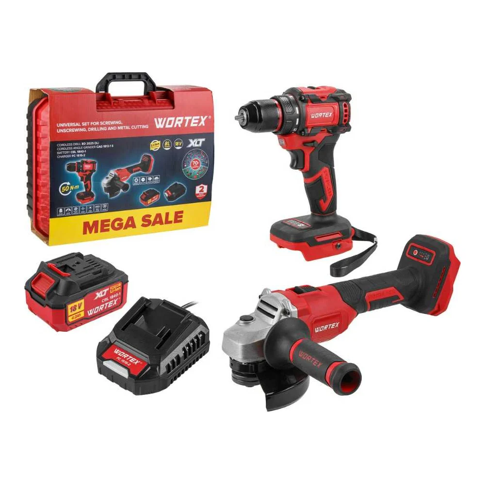 Набор аккумуляторного инструмента WORTEX ALL1 XLT SET: дрель-шуруповерт + ушм, в чемодане 956622 1329850