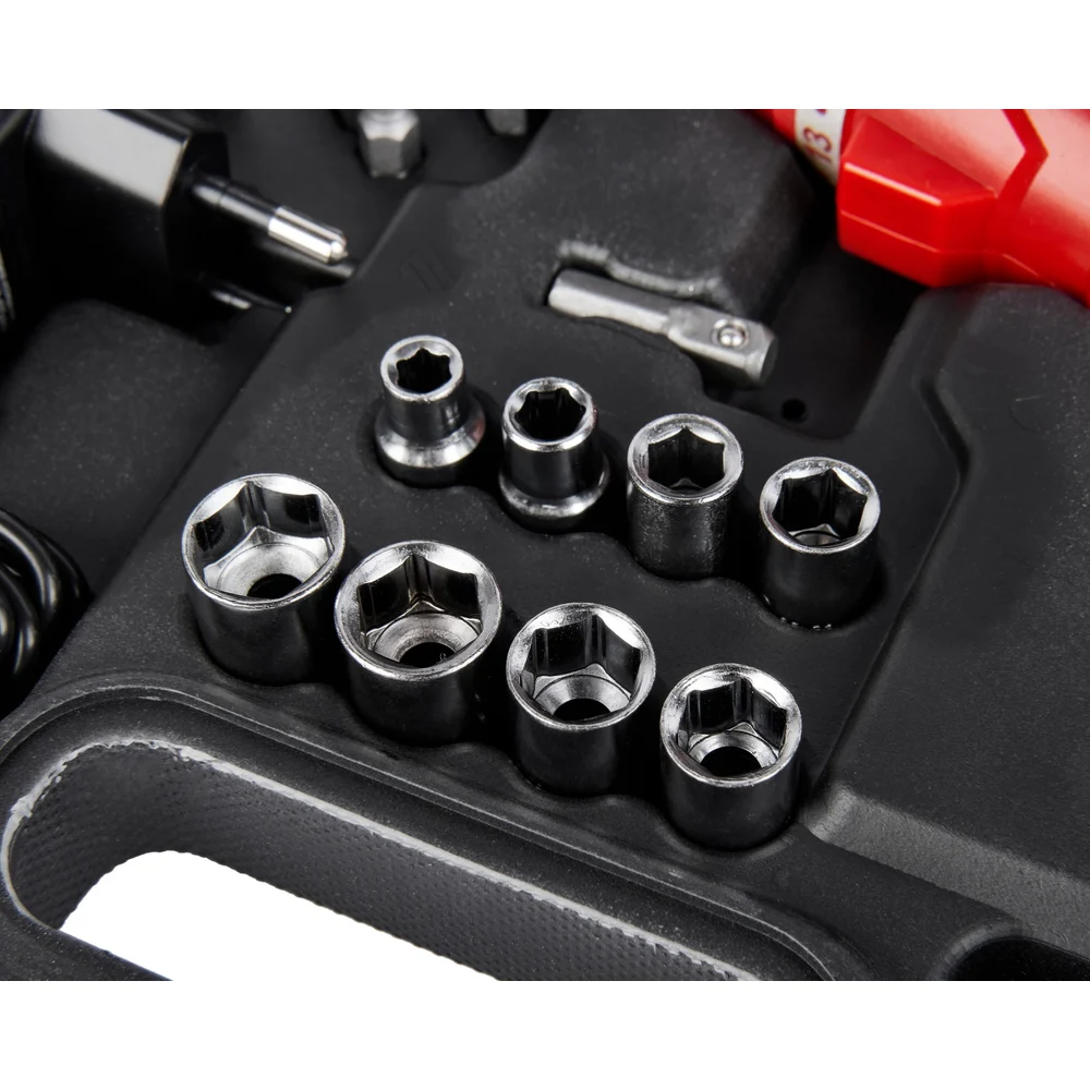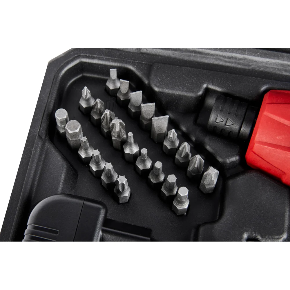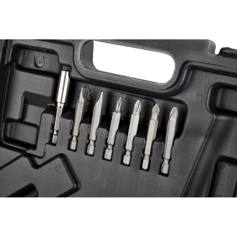 Комплектация Отвертка - 1 шт; Кабель USB-type C - 1 шт; Битодержатель магнитный - 1 шт; Переходник для головок - 1 шт; Головки - 8 шт; Бита 50 мм - 6 шт; Бита 25 мм - 24 шт; Паспорт - 1 шт; Кейс - 1 шт