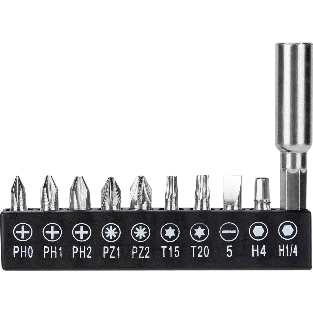 Комплектация Аккумуляторная отвёртка DL-DP04-E2B1; Биты 9 шт; Магнитный держатель-удлинитель; Инструкция; Кейс