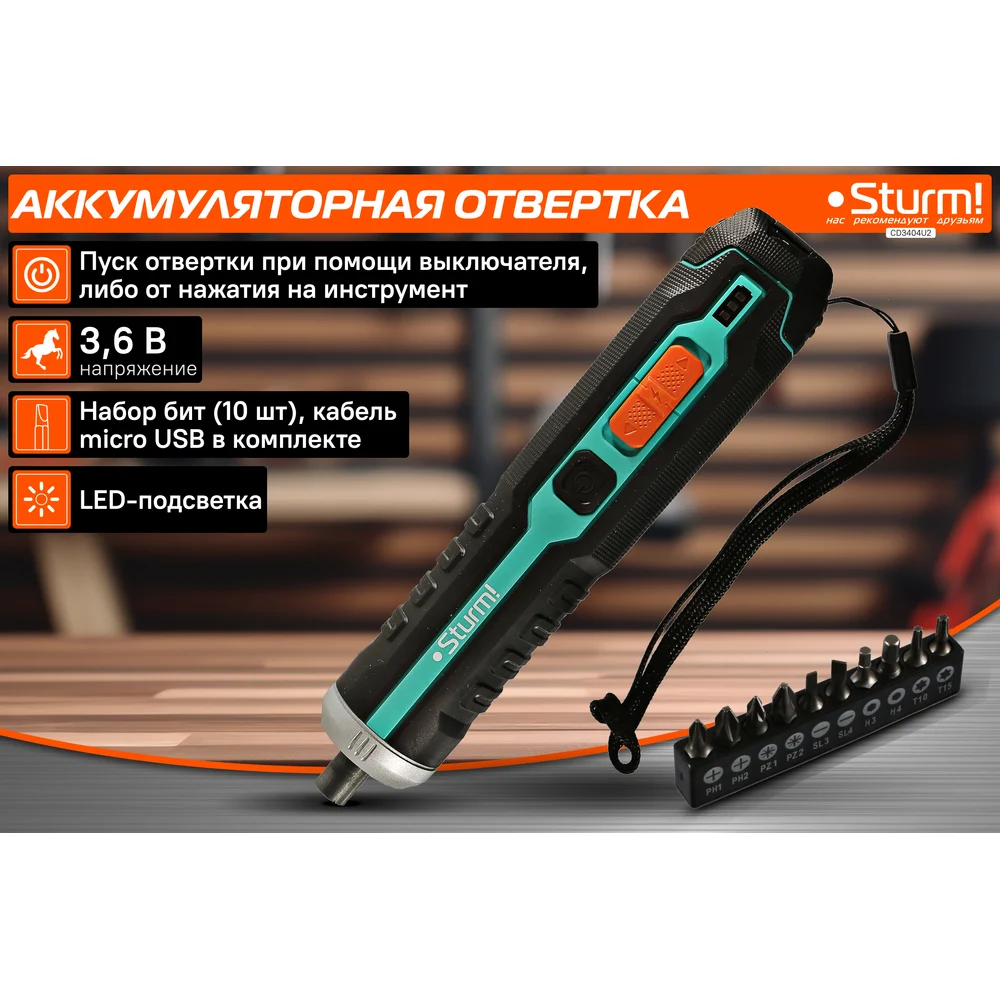 Купить Аккумуляторная отвертка Sturm CD3404U2 по лучшей цене с доставкой - интернет магазин №1 в России