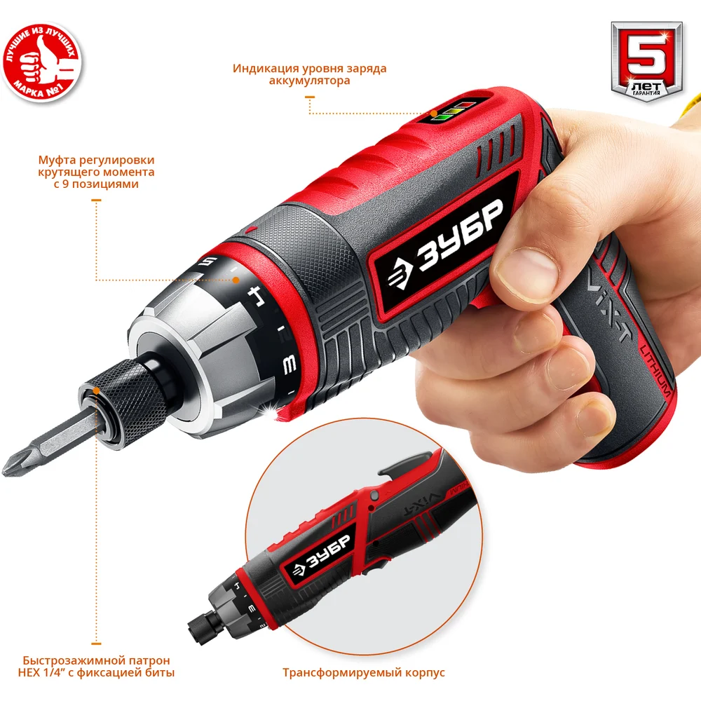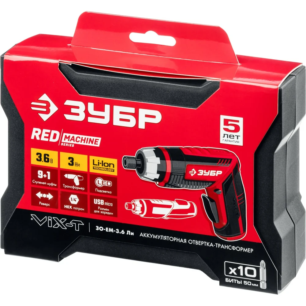 Купить Аккумуляторная отвертка-трансформер ЗУБР ViX-T 10 бит ЗО-ЕМ-3.6 Ли по лучшей цене с доставкой - интернет магазин №1 в России