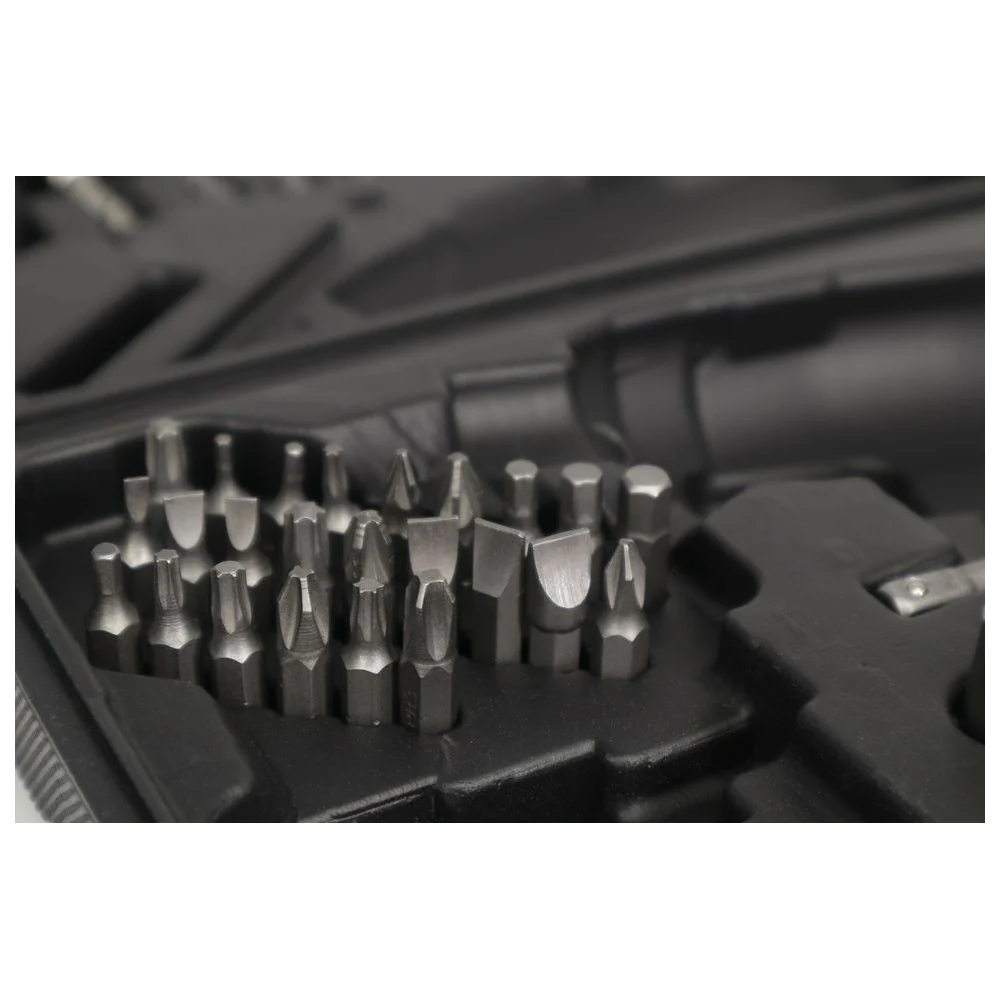 Комплектация Отвертка; Набор бит и головок; Зарядное устройство; Кейс