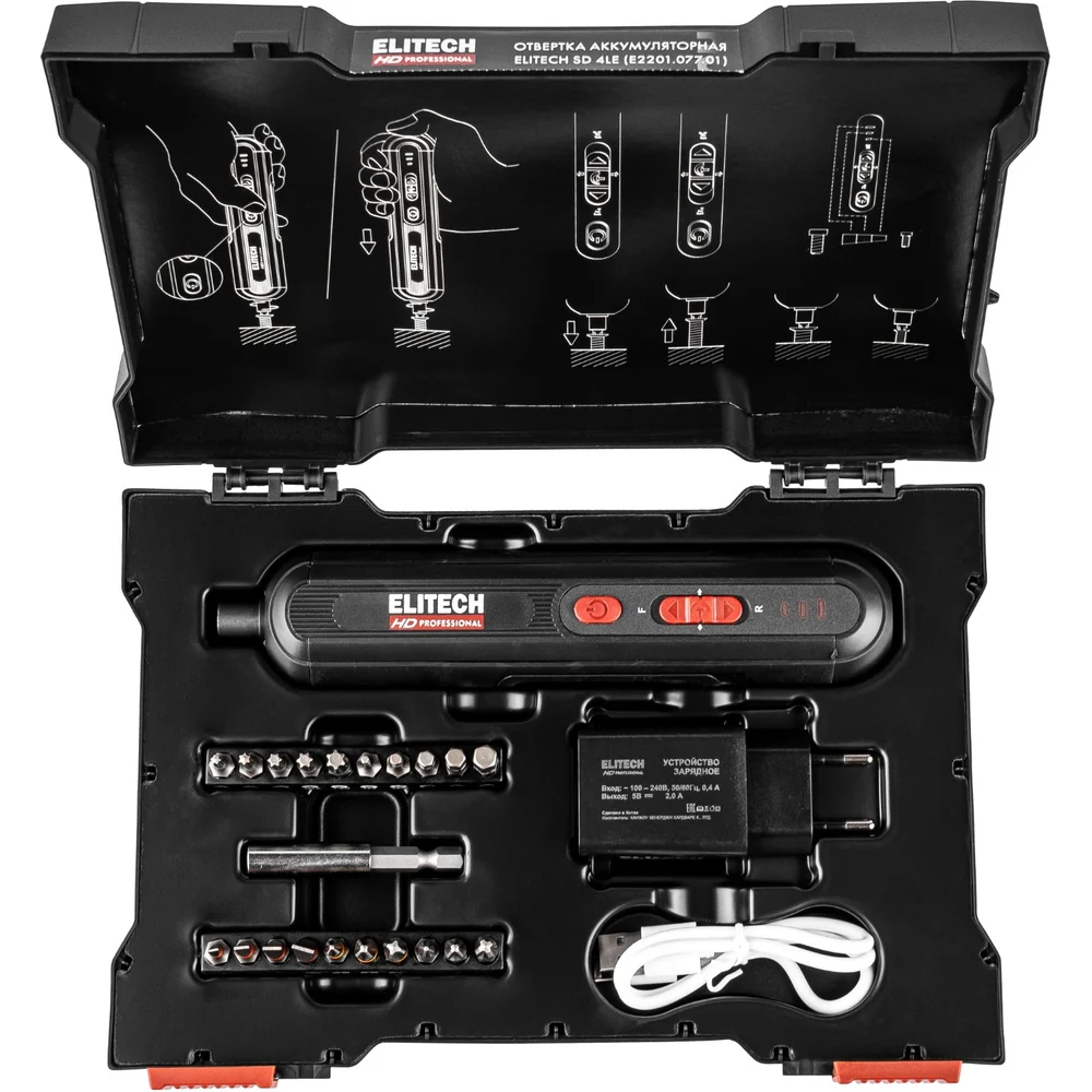 Купить Отвертка аккумуляторная Elitech HDSD 4LE (E2201.077.01) 210283 по лучшей цене с доставкой - интернет магазин №1 в России