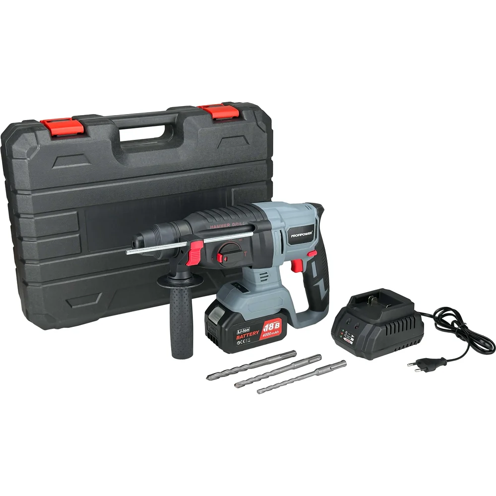 Купить Аккумуляторный перфоратор беcщеточный Profipower MKDHR-18V (Li-ion-1шт, 4.0Ач, 1,9Дж, 3 режима, З/У, кейс) T0058 по лучшей цене с доставкой - интернет магазин №1 в России