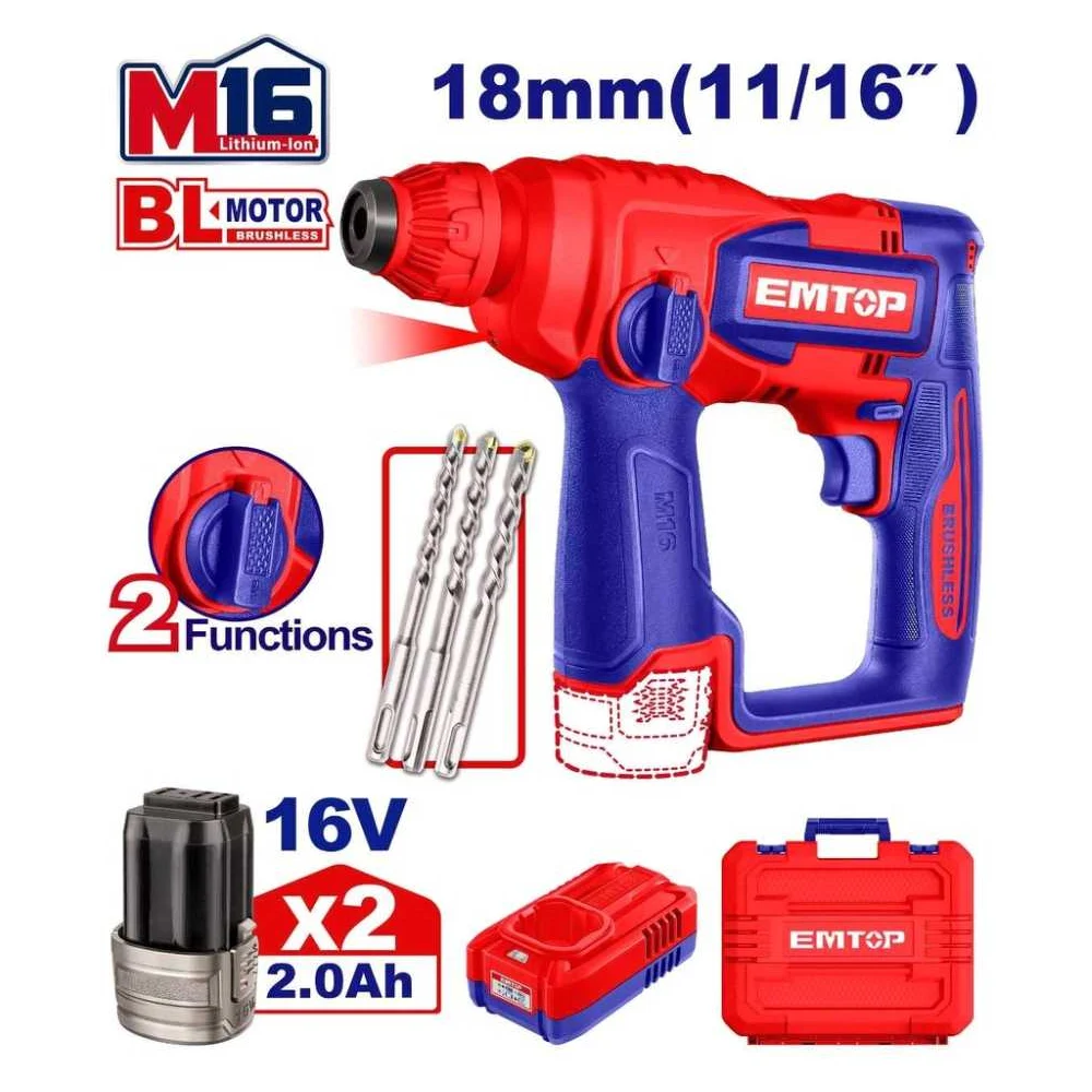 Купить Аккумуляторный перфоратор emtop ELRH16168 по лучшей цене с доставкой - интернет магазин №1 в России