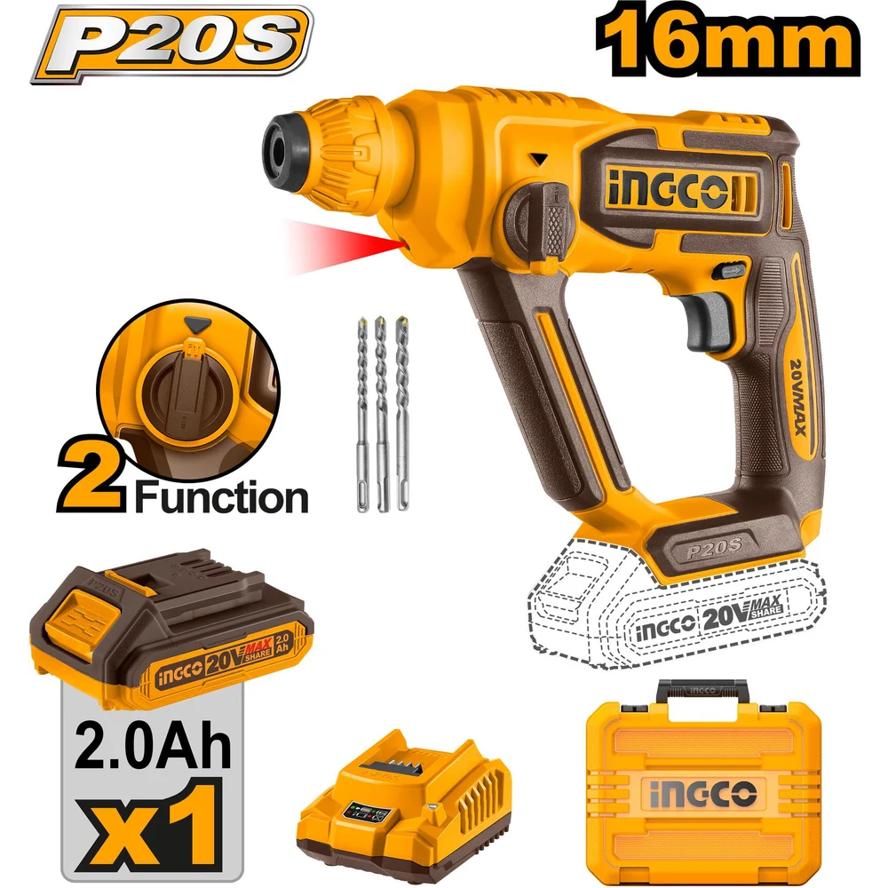 Купить Аккумуляторный перфоратор INGCO 20 В 1,5 Дж CRHLI201681 по лучшей цене с доставкой - интернет магазин №1 в России