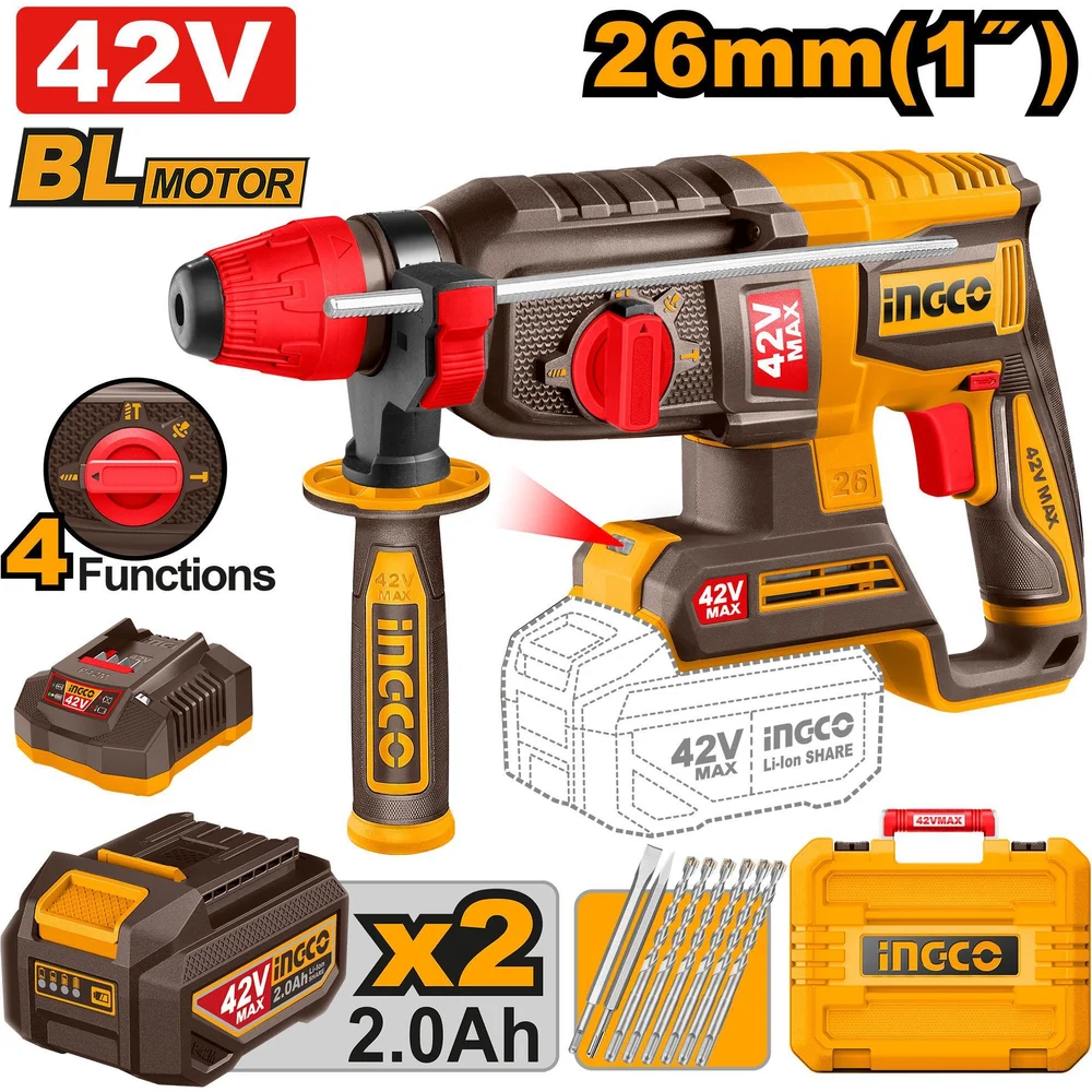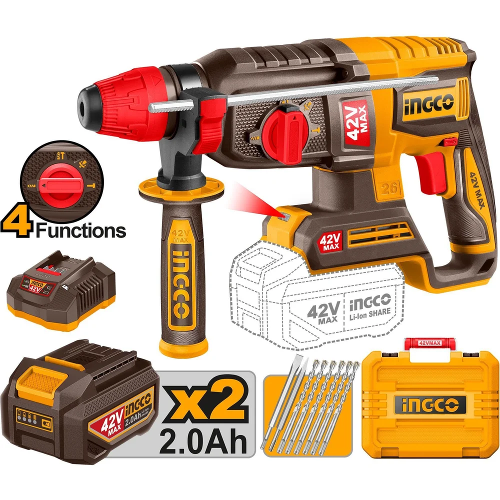 Купить Аккумуляторный перфоратор INGCO 42В 2,5 Дж, б/щ (4) INDUSTRIAL CRHLI422682 по лучшей цене с доставкой - интернет магазин №1 в России