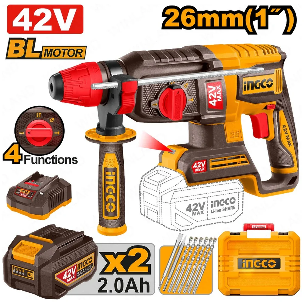 Купить Аккумуляторный перфоратор INGCO 42В 4,5 Дж, б/щ (2) INDUSTRIAL CRHLI422882 по лучшей цене с доставкой - интернет магазин №1 в России