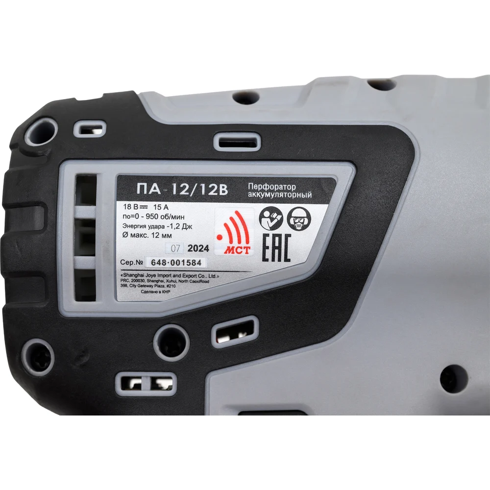 Комплектация Аккумуляторный перфоратор; Аккумуляторный блок БА-2/12- 2шт; Зарядный блок ЗУ-2/12 - 1шт; Картонная коробка; Руководство по эксплуатации и инструкция по безопасности; Гарантийный талон