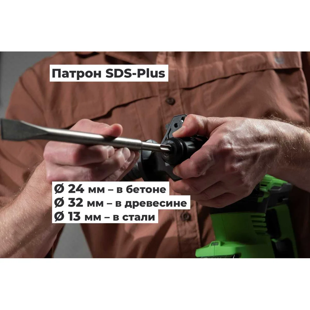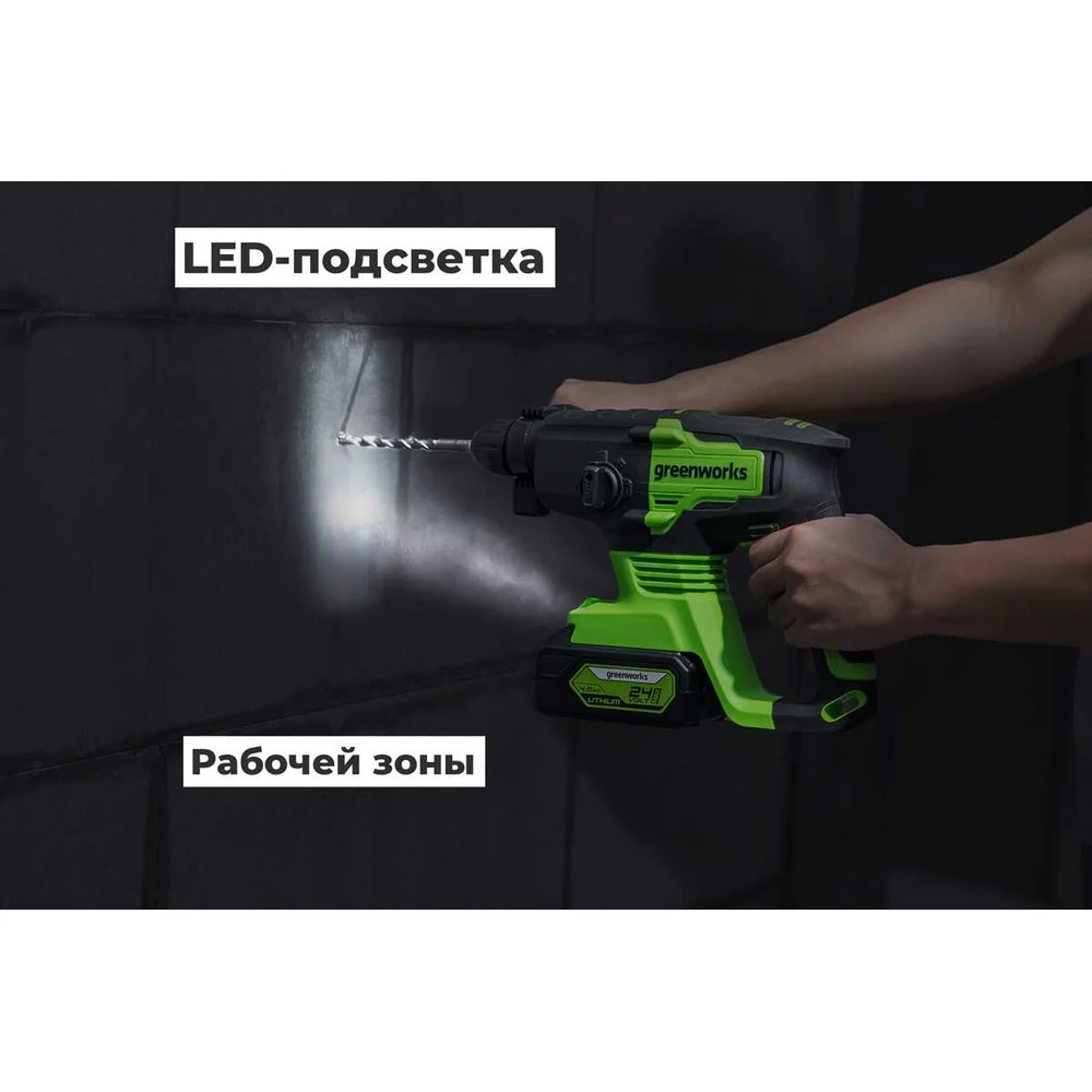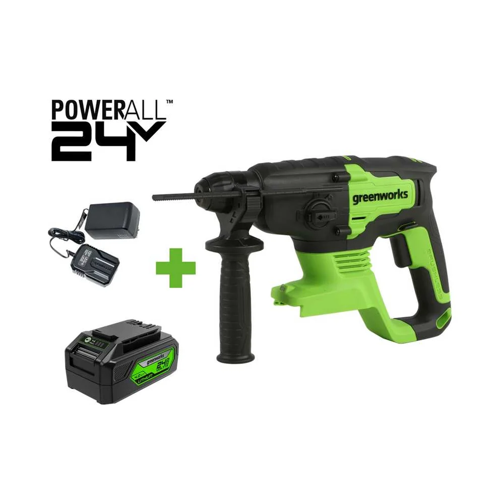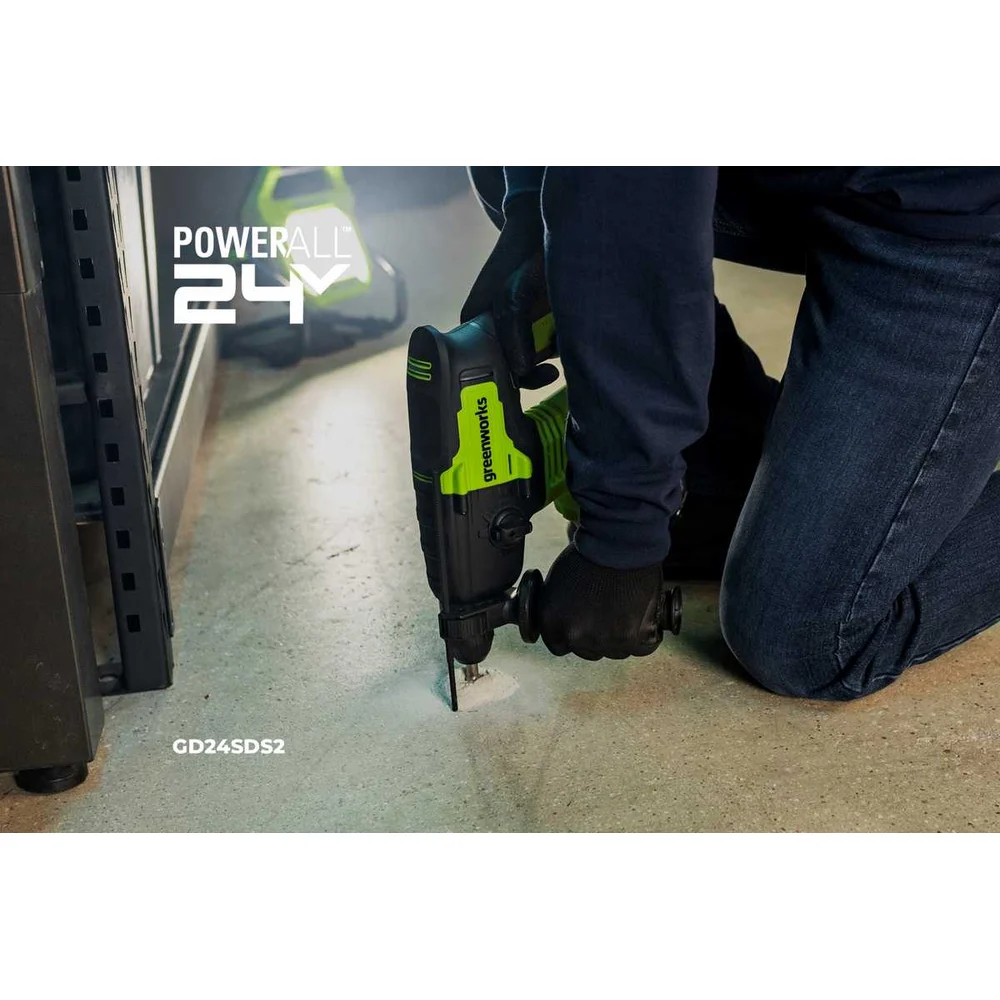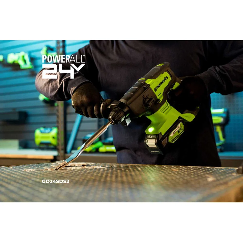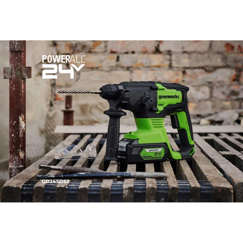 Купить Бесщеточный перфоратор GreenWorks GD24SDS2, 24В, 2 Дж, 4500уд/мин, 24 мм в бетоне, 1x4Ач, ЗУ, 3803007VUB по лучшей цене с доставкой - интернет магазин №1 в России