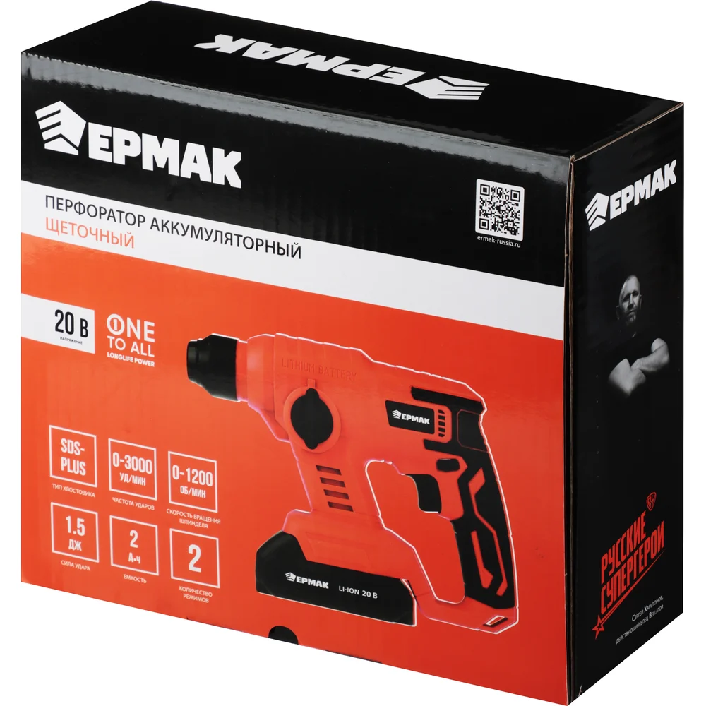 Купить Перфоратор аккумуляторный ЕРМАК 20В 2АЧ, 1.50 Дж 691-059 по лучшей цене с доставкой - интернет магазин №1 в России
